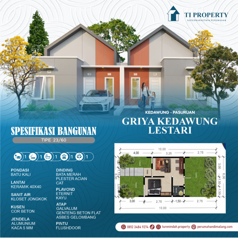 Perumahan Subsidi Griya Kedawung Lestari adalah solusi ideal bagi Anda yang mencari hunian berkualitas dengan harga terjangkau di Kedawung Wetan, Kecamatan Grati, Pasuruan, Jawa Timur. Dengan dukungan program subsidi pemerintah, Griya Kedawung Lestari menyediakan kesempatan untuk memiliki rumah yang nyaman dan terjangkau tanpa mengorbankan kualitas.