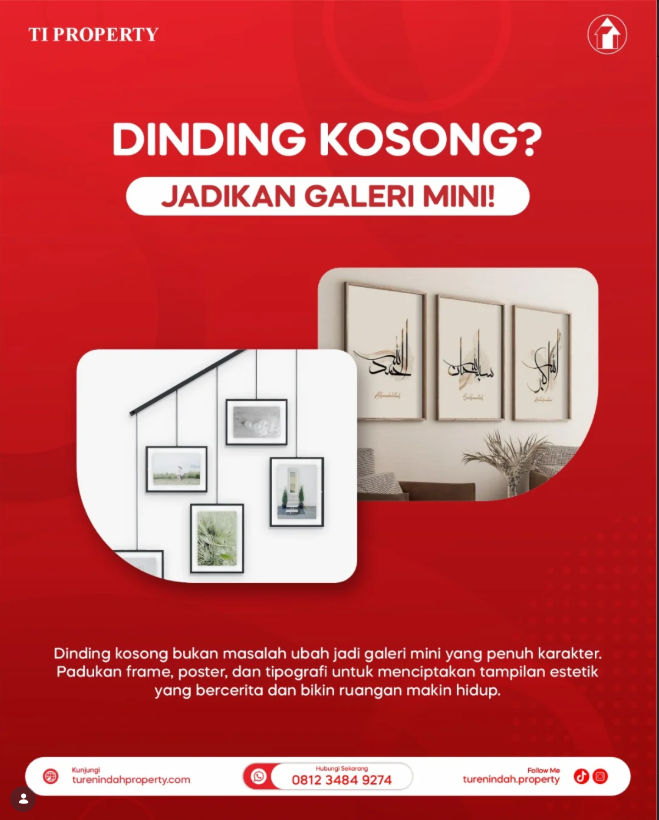 Mulai dari foto keluarga, poster estetik, hingga kaligrafi, semuanya bisa disesuaikan dengan gaya dan kepribadian penghuni rumah. Ingat, rumah bukan hanya tempat tinggal, tetapi ruang hidup yang seharusnya membuat penghuninya merasa nyaman dan bahagia.